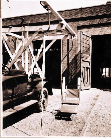 The prototype of the first chairlift tested on the streets of Omaha, Nebraska.