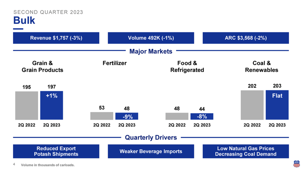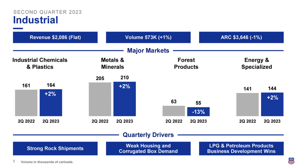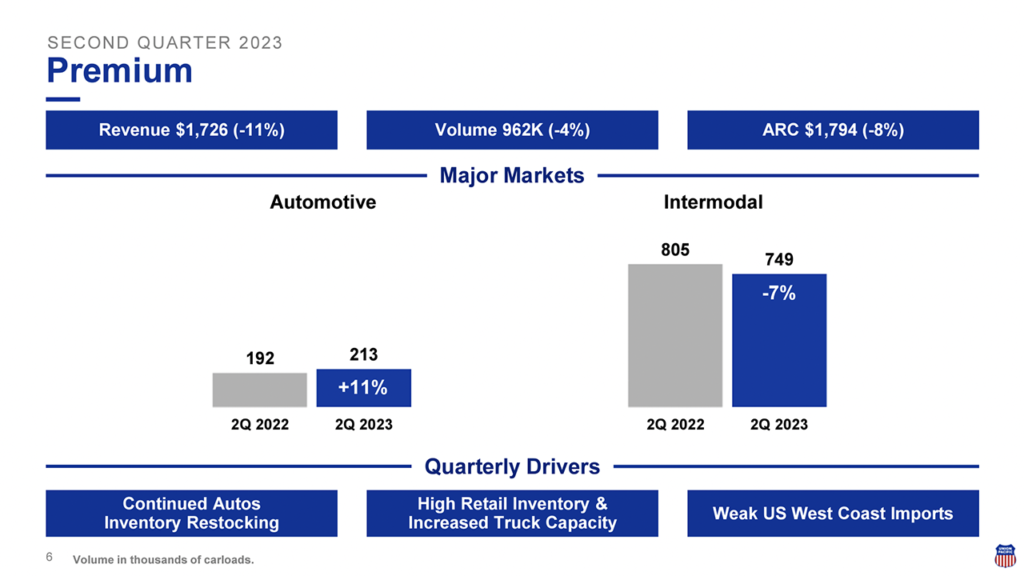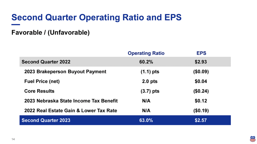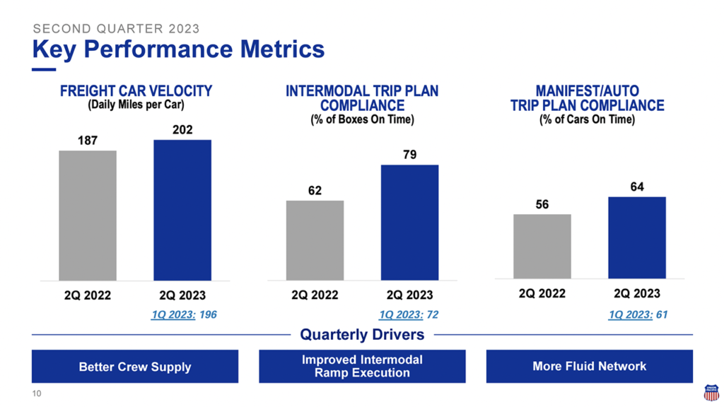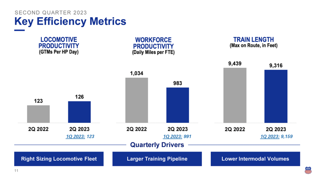 UP posted the following second-quarter 2023 operating performance results: