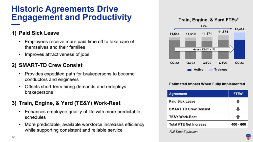 “We note that UP faces incoming headwinds that could limit near-term upside. UP recently reached new agreements with rail unions relating to a host of work/life issues and anticipates the cost impacts of new labor agreements to materialize in 2H23 (increase of $50MM-$70MM called out) and bleed into 1H24. Additionally, rail regulation risk is salient in the form of a reciprocal switching rule likely to be formalized in 2H23, and FRA restrictions on train length and weight (probe presently under way).