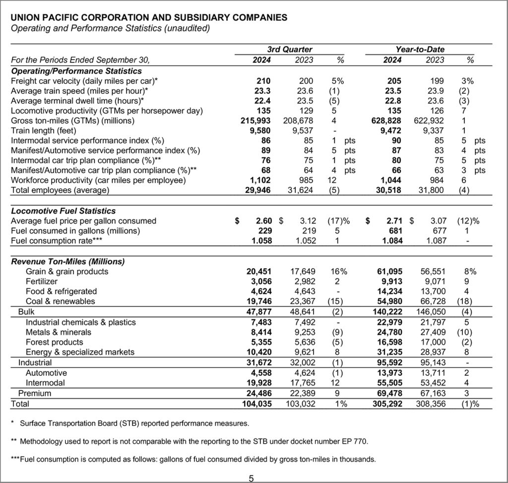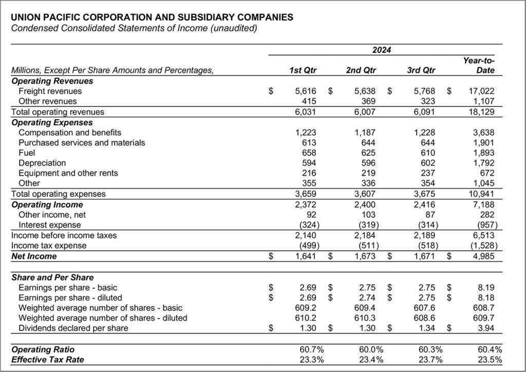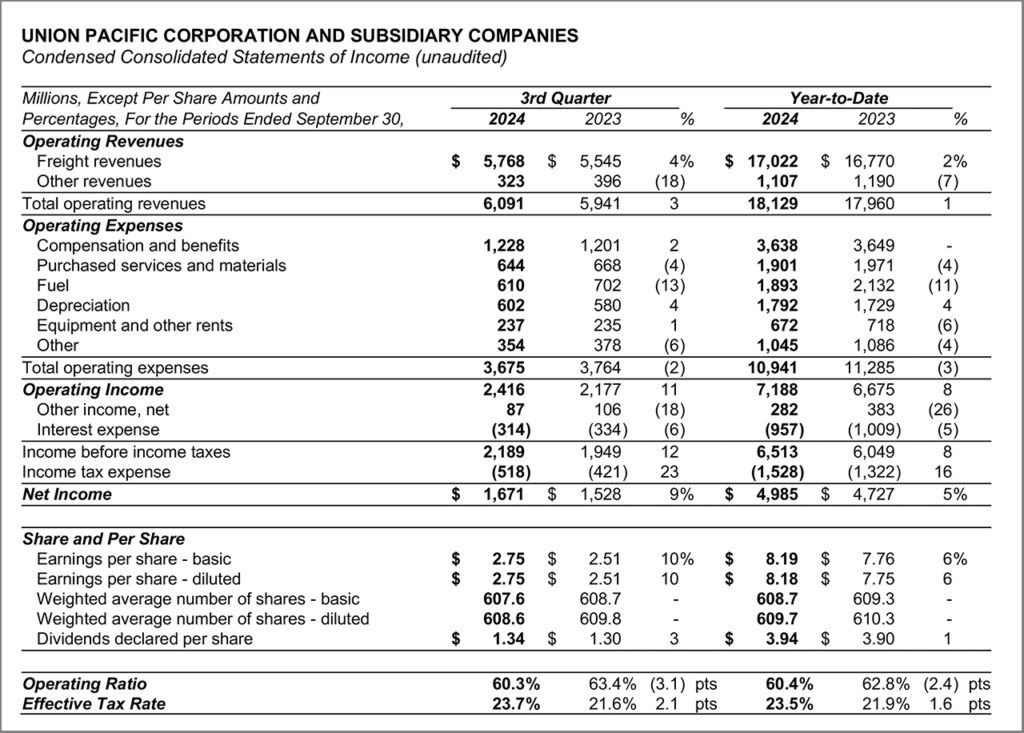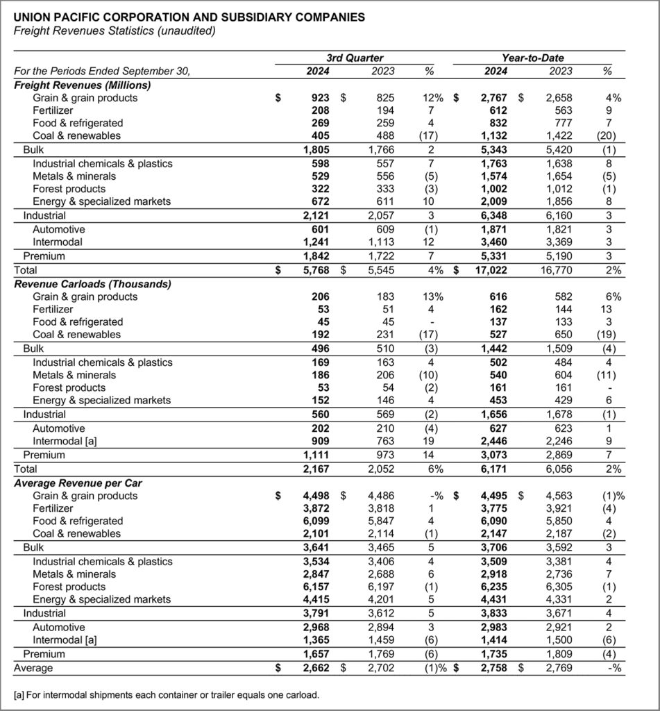 UP 3Q2024 Shows Growth, Improvement Across the Board (Updated with Jim Vena Interview and TD Cowen Analysis)