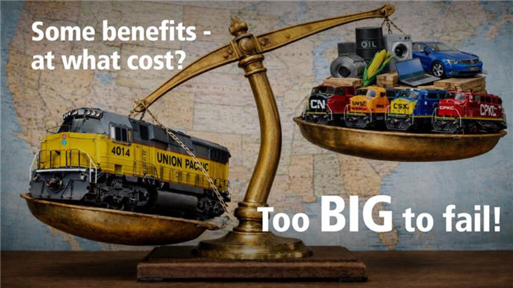 “The merger will lower costs by reducing handoffs and using faster, more efficient and price-competitive routes. Opponents say the merger will drive prices up for shippers. They have no evidence, so they simply use it as a scare tactic. The reality is that single-line, coast-to-coast service is more cost efficient, which is a big win for U.S. businesses and consumers. According to a study by leading industry advisor Oliver Wyman, interline merchandise traffic moving 1,000 to 1,500 miles costs on average 35% more than comparable single-line service, just one example of the savings.