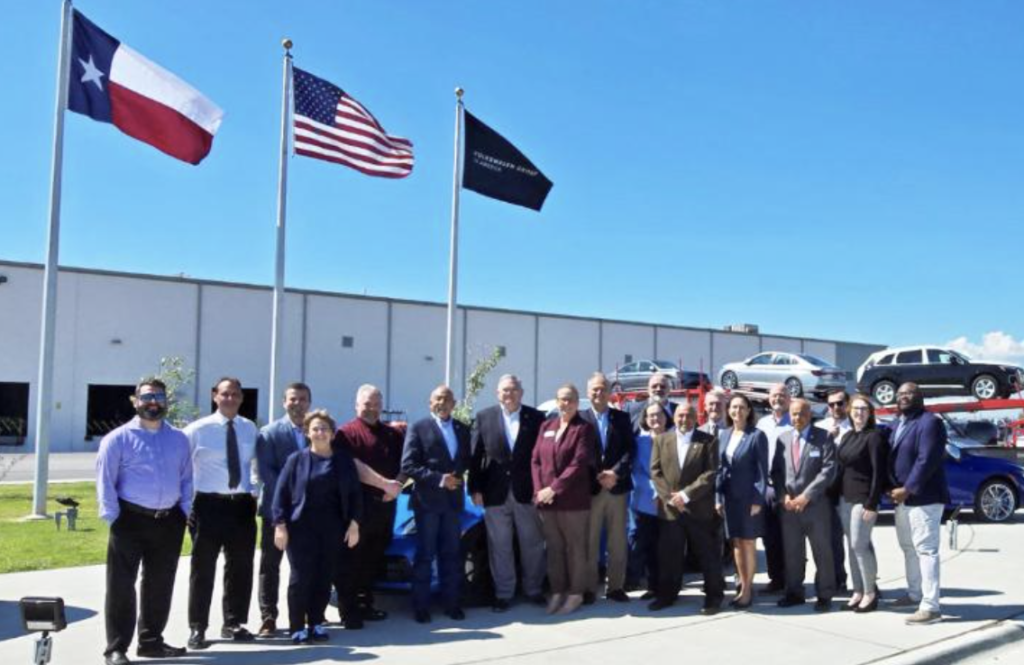 Volkswagen Group of America (VWGoA) recently celebrated the grand opening of a Union Pacific (UP)-served vehicle processing center in Freeport, Tex.
