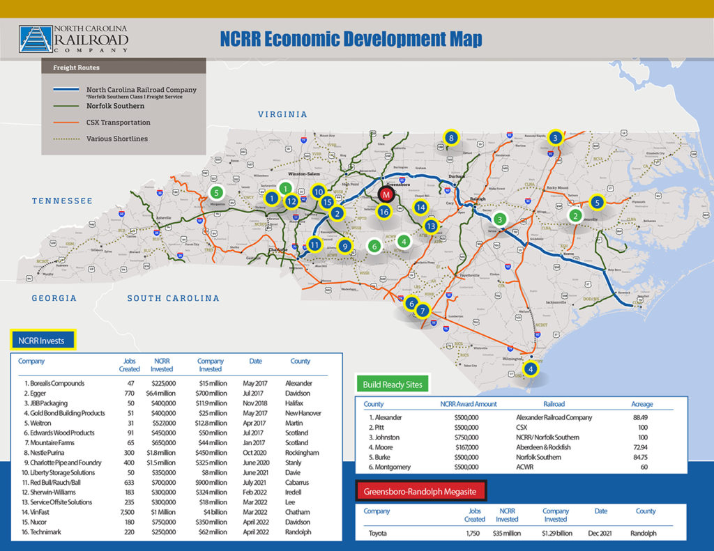 The North Carolina Railroad Co. (NCRR) has partnered with the state’s economic development community and railroads to offer “Build Ready Sites” that, among other initiatives “drive increased job creation, freight rail use and economic growth.”