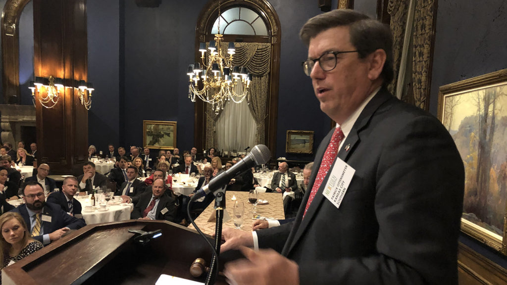 Ottensmeyer accepting Railway Age’s 2020 Railroader of the Year award at the Union League Club of Chicago. William V. Vantuono photo.