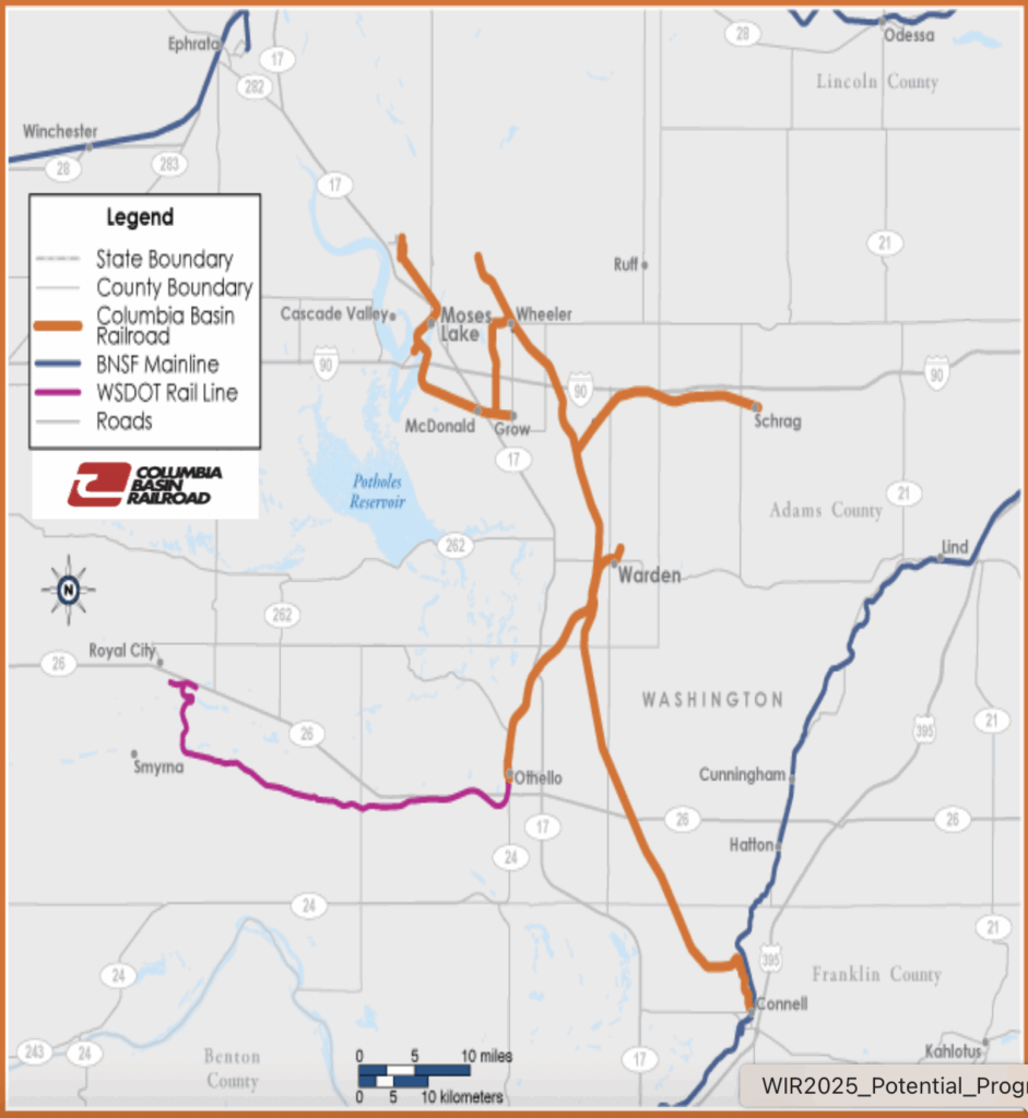 The 25-mile NLR and the 86-mile CBRW interchange with BNSF at St. Cloud, Minn., and Connell, Wash., respectively (see maps below).