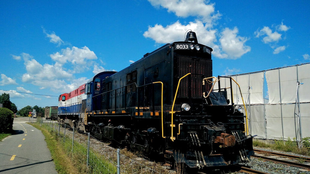 Sartigan Railway 8033 at the intermodal center in Scott, Quebec, in 2020. Félix Mathieu-Bégin/Wikimedia Commons