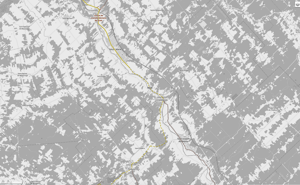 The first segment reopened the line to Vallée-Jonction in 2025 with clearing, repairing and replacing of infrastructure on an unused 11.2-mile segment of the line south of Scott, Quebec. Rehabilitation was budgeted at C$59.2 million. The second segment is the more substantial, and includes full replacement of rail, replacement of 17 railway bridges with all new structures, 102 new culverts, and replacement of 40 grade crossings on 36 miles of line that has not seen traffic in more than 20 years. This C$440 million project is expected to open in 2026 following three years of construction.
