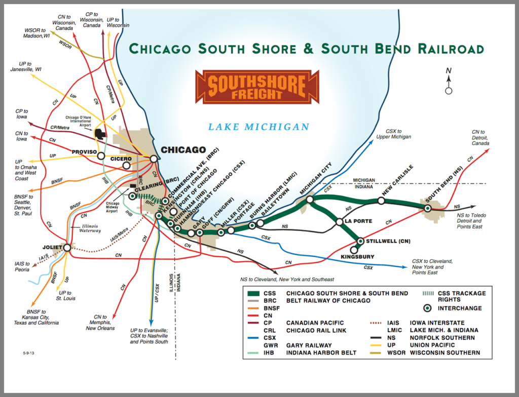 CSS, an affiliate of Anacostia Rail Holdings, provides freight service over 127 miles of line between Chicago and South Bend, Ind., and Chicago and Kingsbury, Ind., with connections to all Chicago-area railroads as well as the Port of Chicago.