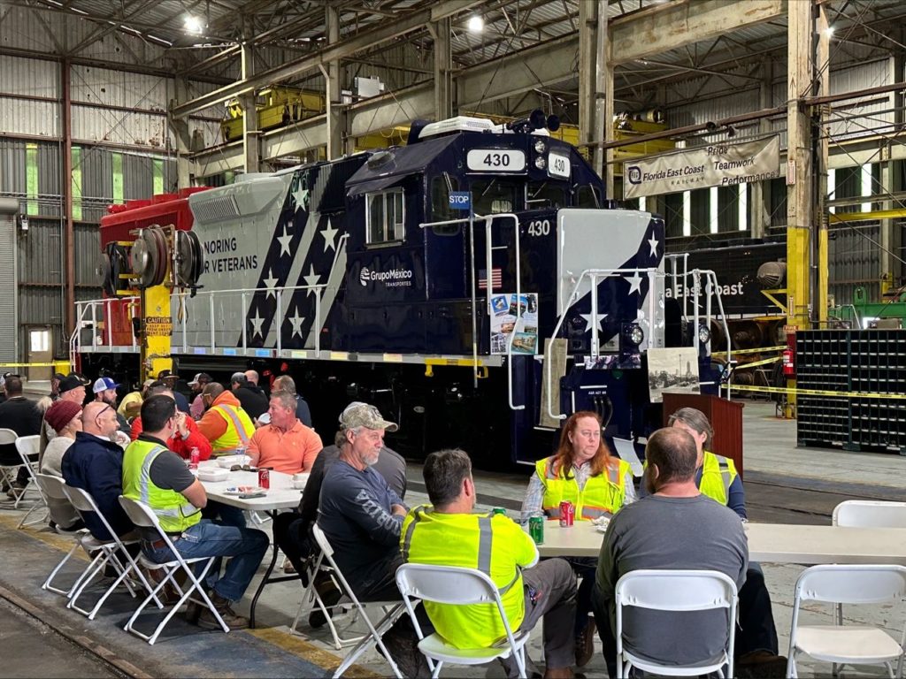 Florida East Coast Railway (FECR) recently unveiled at its Smyrna Beach, Fla., shop a new locomotive paint scheme, as well as its FEC-430 to commemorate the railroad’s veterans.