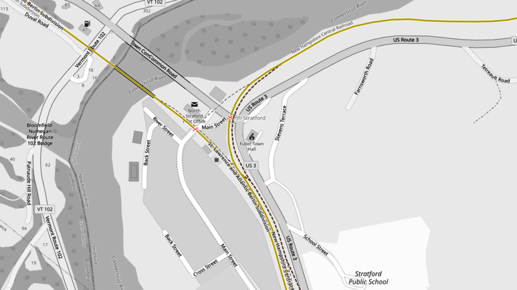1. Milepost P 131.93 at North Stratford, N.H., to milepost P 145.21 at Colebrook, N.H.