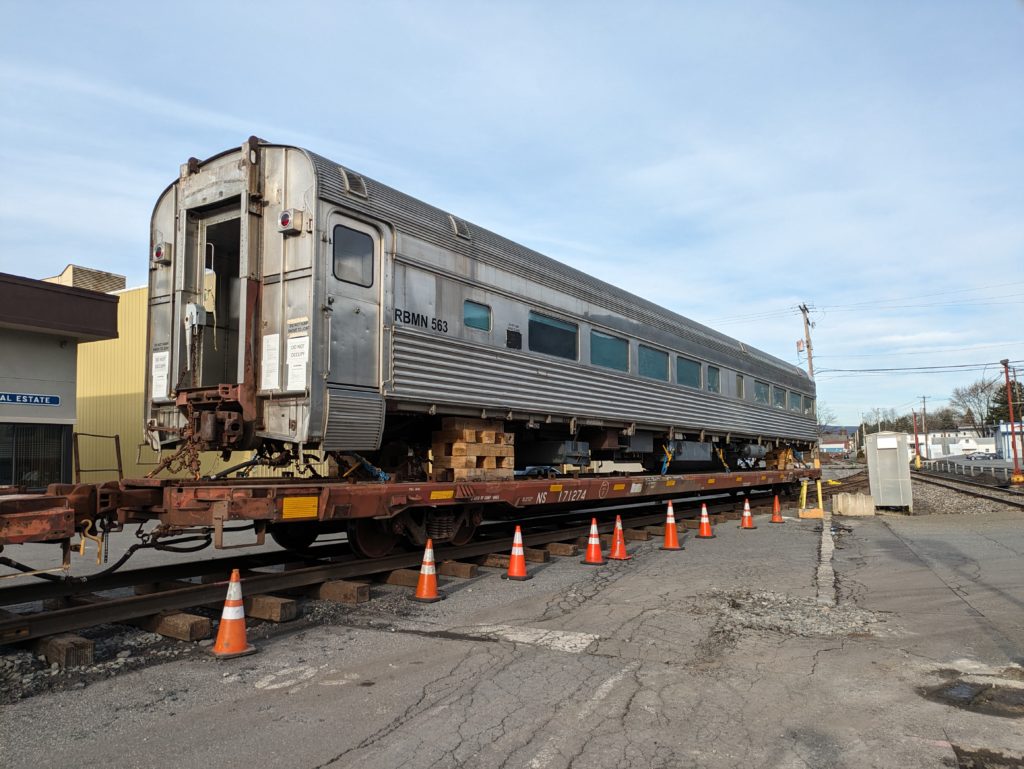 Future Crown Class Coach #563 awaiting wheel replacement at Nesquehoning.