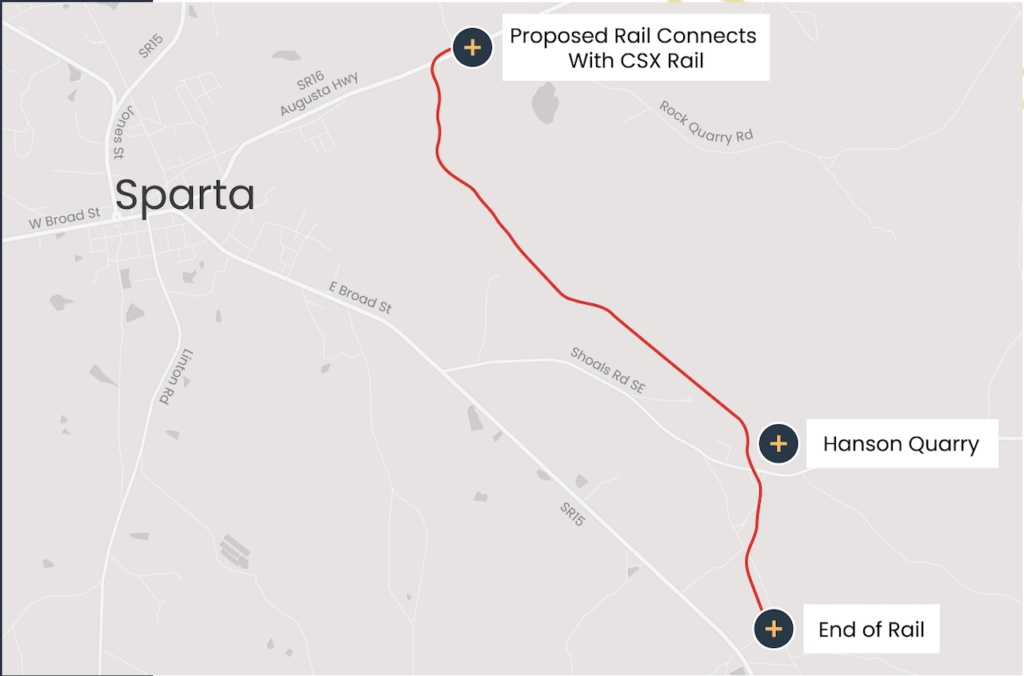 According to SRR, the 4.5-mile spur will connect the CSX rail line that runs along Georgia Highway 16 to the Heidelberg Materials aggregate quarry in Sparta. Expected to be in service by the end of 2024, the spur will be SRR’s first expansion in the county. It will offer one trip each weekday at 20 mph or less and generate more than $1.5 million in projected annual economic benefit, according to the railroad. SRR operates over a 37-mile system, which includes 10 miles of main line with an interchange with Norfolk Southern in Tennille, Ga.
