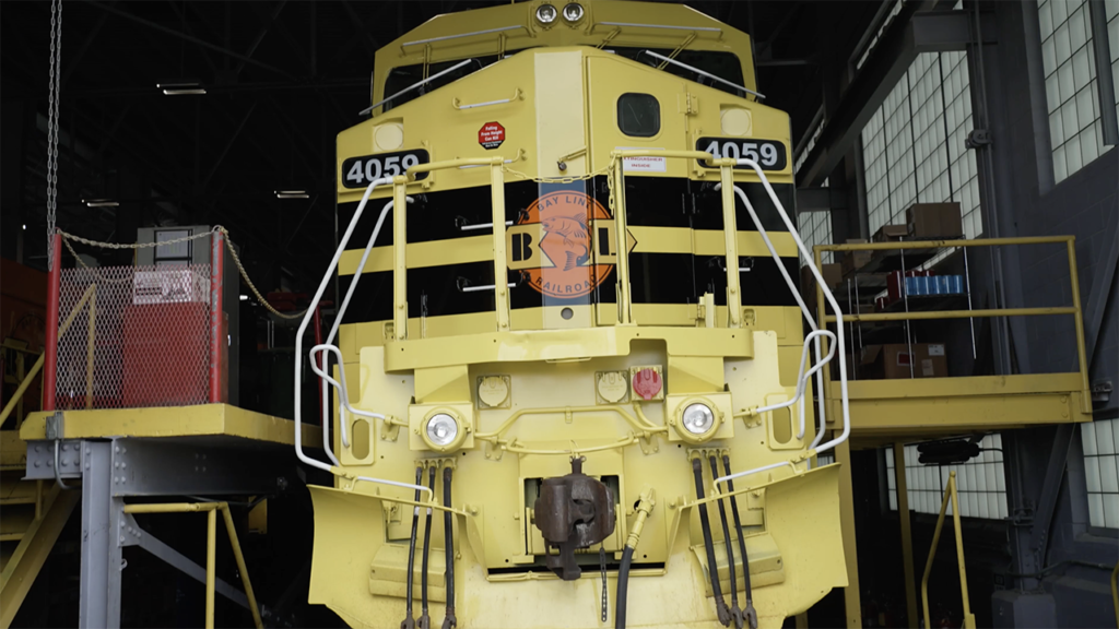“Today, we are excited to share this video which introduces our new locomotive design scheme honoring veterans and service members, and showcases several of the many veterans who work for G&W,” G&W posted on Facebook and LinkedIn on Veterans Day. (Screenshot of Providence & Worcester 4069 from G&W Video)