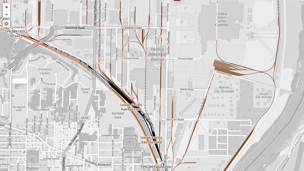 The “half-mile stretch of railway” in the Fairfax District of Kansas City runs directly behind SMC Global’s facility at 2955 Chrysler Road, it said. UP told Railway Age that the property “was part of an industrial lead that is no longer in use.” (Scroll down for maps.) The sales price was not disclosed.