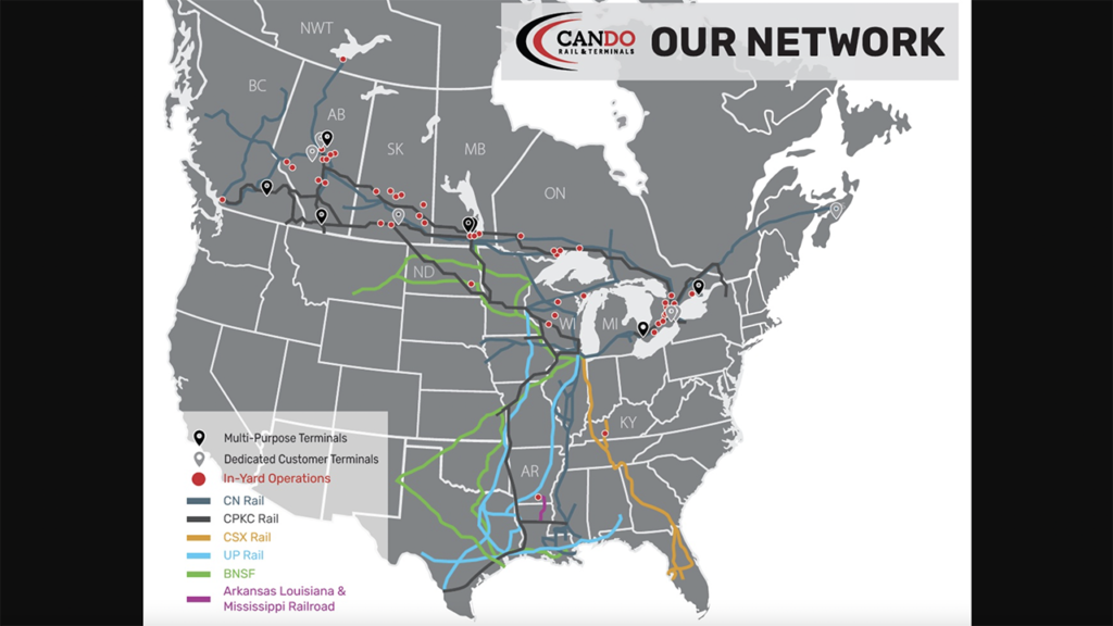 “Transmark was the perfect fit for Cando,” Cando President and CEO Brian Cornick said. “The company shares a commitment to customer service, safety, and providing innovative solution—the same values that have defined Cando since 1978. The terminal will allow us to expand our nation-wide logistics planning network, thereby enabling greater movement of Canada’s goods and resources in a key transportation corridor. The acquisition of our newest terminal in Southern Alberta is a defining moment for Cando Rail & Terminals. It signals a new era of growth for Cando. Strategic acquisitions such as this allow us to grow our terminal network across Canada and into the United States to better serve our clients.”
