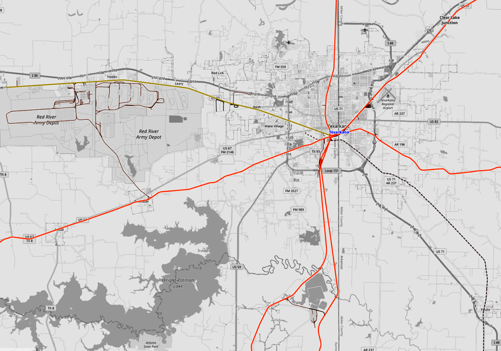 Texarkana rail network. OpenRailwayMap.org