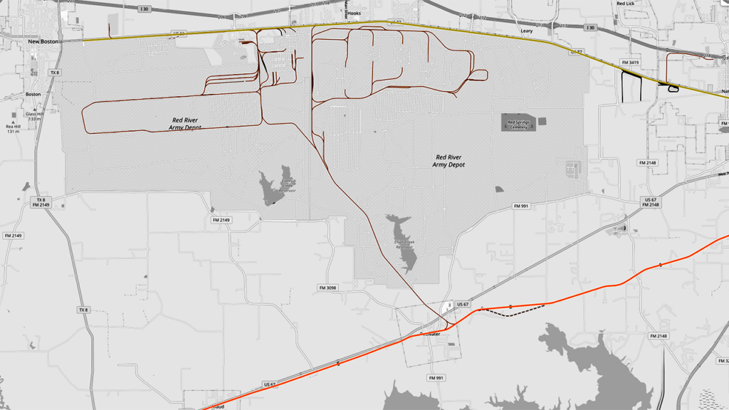 Union Pacific serves TexAmericas Center, one of its industrial development Focus Sites. “One of the largest rural industrial centers in the Americas, TexAmericas Center brings together an unmatched land resource of nearly 12,000 acres and three million square feet of office, manufacturing, warehouse and storage space,” UP notes. Located just west of Texarkana, Tex., on the railroad’s Bonham Industrial Lead (Little Rock Subdivision), it “offers rail and interstate transportation (I-30 and U.S. 82), abundant natural and human resources, adaptable infrastructure and a climate and culture that understands, appreciates and encourages business growth.” TexAmericas Center also connects with UP’s Pine Bluff Subdivision. CPKC’s Shreveport Subdivision is accessible, as well, as it connects with both of UP’s subdivisions in the Texarkana region.