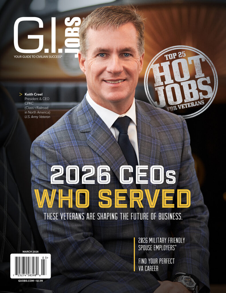 GI Jobs, March 2026 Issue:2026 CEOs Who Served: These Veterans Are Shaping the Future of Business. CPKC CEO Keith Creel’s journey from military service to the top of the rail industry reflects a path shared by many leaders on this year’s list.