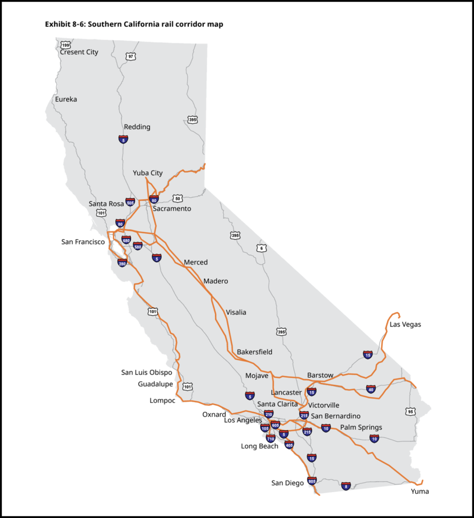 ARH pointed out that Class I railroads are planning significant investment in intermodal terminals: BNSF in Southern California at Barstow and Union Pacific (UP) in the Inland Empire. UP has also announced plans for a new international intermodal service from the Los Angeles Basin to Phoenix, Ariz., which is slated to begin in first-quarter 2024. Additionally, ARH reported that the California State Transportation Agency has awarded grants to support development of a proposed inland port in Merced County to be served by Patriot Rail, and the California Department of Transportation (Caltrans) has discussed inland ports and intermodal as potential options to reduce port truck traffic and achieve decarbonization goals, as part of its long-range freight mobility planning.