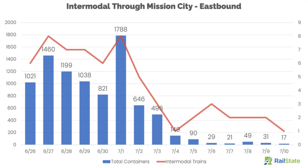 “Likely in anticipation of the strike, containers were loaded on trains before July 1 and the trains moved out of the port on the day the strike began, explaining the higher volumes of trains and container movement on July 1.
