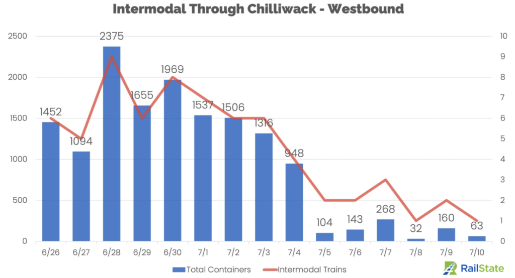 “Since the strike started, the volume of imported containers moving on rail out of the Port of Vancouver has plummeted. (The only movement of 20’ and 40’ containers out of the port over the past week have been on domestic intermodal trains.)