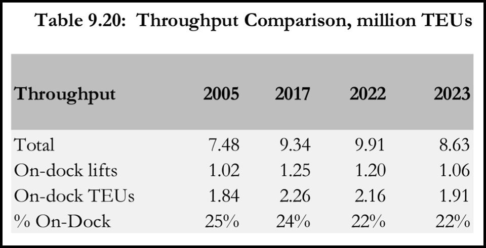Table 9.20 (below) shows the throughput and locomotive activity for 2023, the previous year, 2017 and 2005: