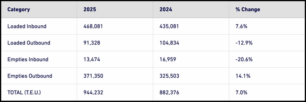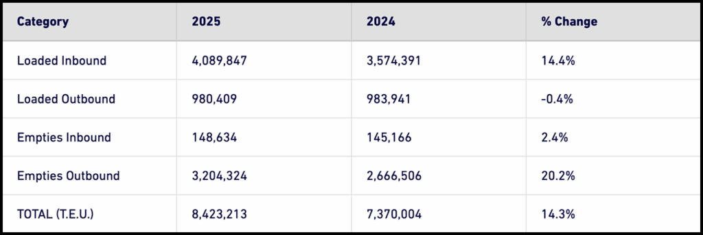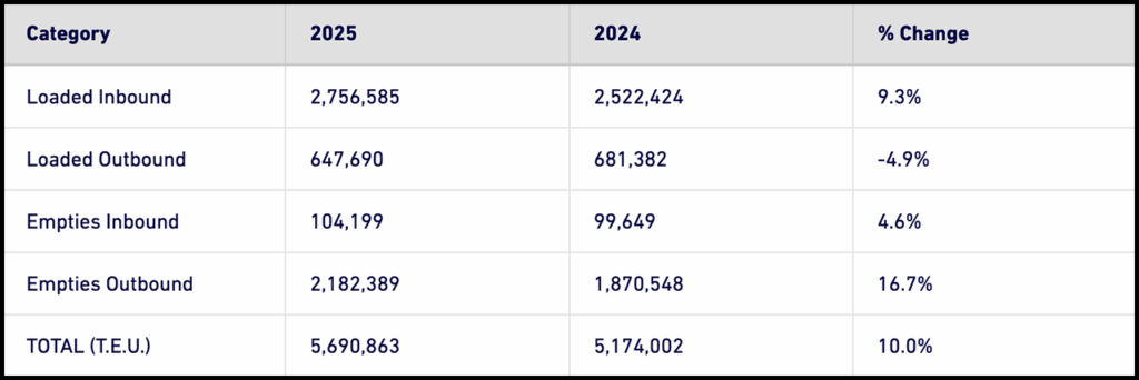 July 2025 loaded imports came in at 543,728 TEUs, 8% more than last year and the most imports ever in a month at the Port, it reported. Loaded exports landed at 121,507 TEUs, a 6% improvement from 2024. Additionally, the Port processed 354,602 empty container units, 10% more than last year.