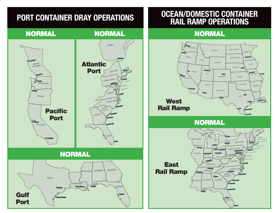ITS Logistics, a Nevada-based third-party logistics (3PL) firm, releases each month an index forecasting port container and dray operations for the Pacific, Atlantic and Gulf regions; ocean and domestic container rail ramp operations are also highlighted for both the West and East inland regions.