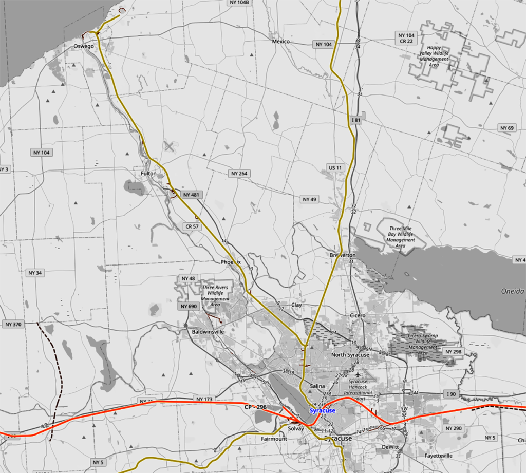 CSX serves the Port of Oswego via its Fulton Subdivision (originally part of the former Northern Division of the New York, Ontario & Western). At North Syracuse, N.Y., the Fulton Subdivision connects with CSX’s St. Lawrence Subdivision, which in turn connects with the Mohawk Division (former New York Central/Penn Central/Conrail) portion of CSX’s Chicago-Toledo-Cleveland-Buffalo-Albany-Boston main line.