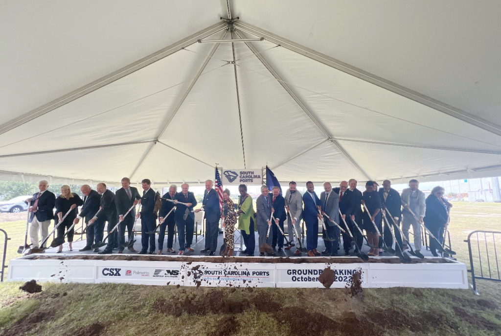 SC Ports officials and elected officials gathered on Oct. 17 in North Charleston to celebrate the groundbreaking of the rail-served Navy Base Intermodal Facility, which will provide near-dock rail and inner-harbor barge operation to the Port of Charleston to “ensure fluidity and capacity for the Southeast supply chain.”