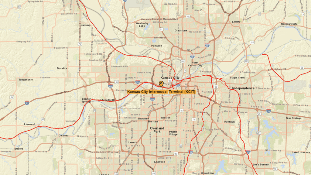Located west of downtown on existing UP property (Armourdale Yard) and near several major highway and interstate arteries, the Kansas City Intermodal Terminal provides customers in the growing markets of Missouri, Kansas, Iowa, and Nebraska access to UP’s 23-state network, including ocean ports on the West Coast and the Gulf of Mexico, according to the railroad (see map above). It will “accommodate significant future expansion with growth in demand,” the railroad said during its October 2024 announcement of the terminal’s construction, and will “help to convert more truck traffic to rail, reduce congestion on the nation’s highways, and lower greenhouse gas emissions.”