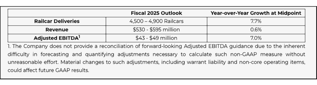 FreightCar America reaffirmed its outlook for Fiscal Year 2025: