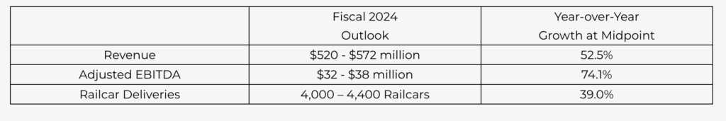 “As we scale-up, we are well positioned to gain meaningful new efficiencies on more railcars in total. Although uncertainties exist around future border disruptions as well as the overall strength of the market at present, we are confident in our ability to drive additional meaningful top and bottom-line growth in 2024.”
