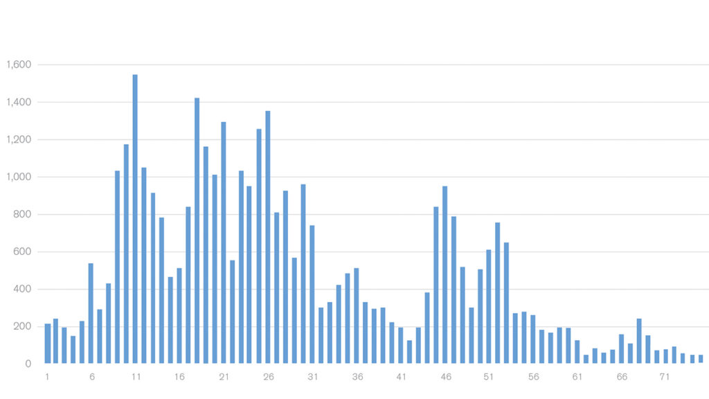 FIGURE 2: NORTH AMERICAN LOCOMOTIVE FLEET, NUMBER OF LOCOMOTIVES BY AGE (ACTIVE LOCOMOTIVES IN UMLER®)