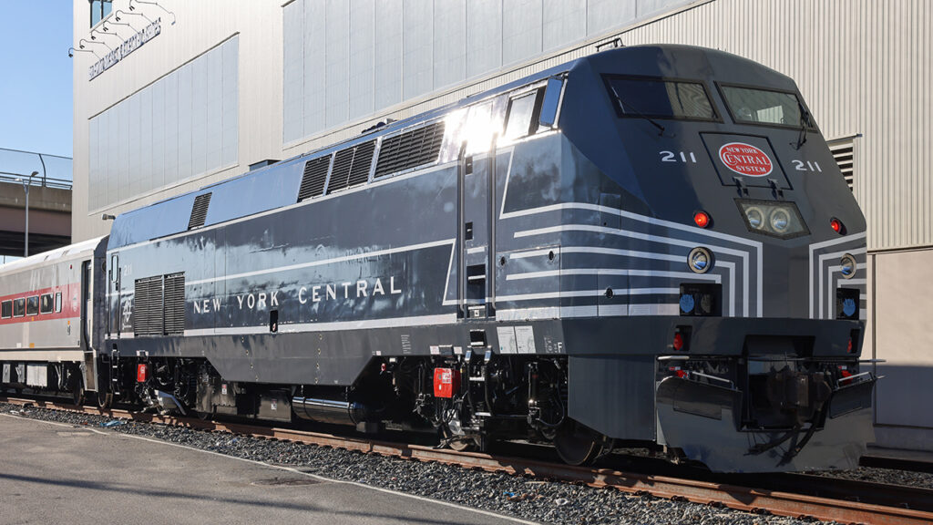 The third commemorative locomotive paid tribute to New York Central, the predecessor railroad that built and operated the Hudson and Harlem lines. No. 211 made its debut run in NYC’s famous lightning-stripe paint scheme on the Hudson Line on Nov. 14, 2023.
