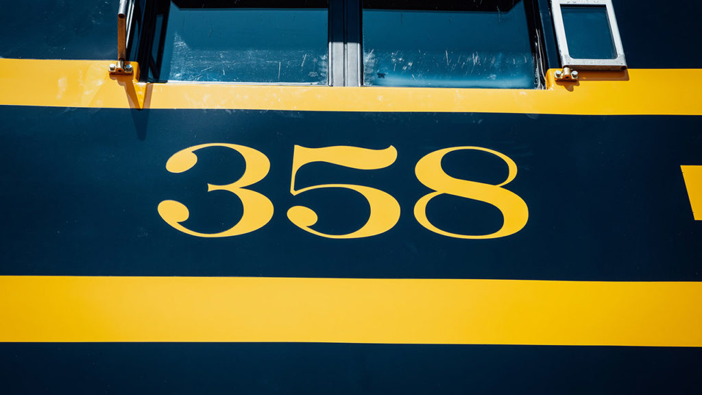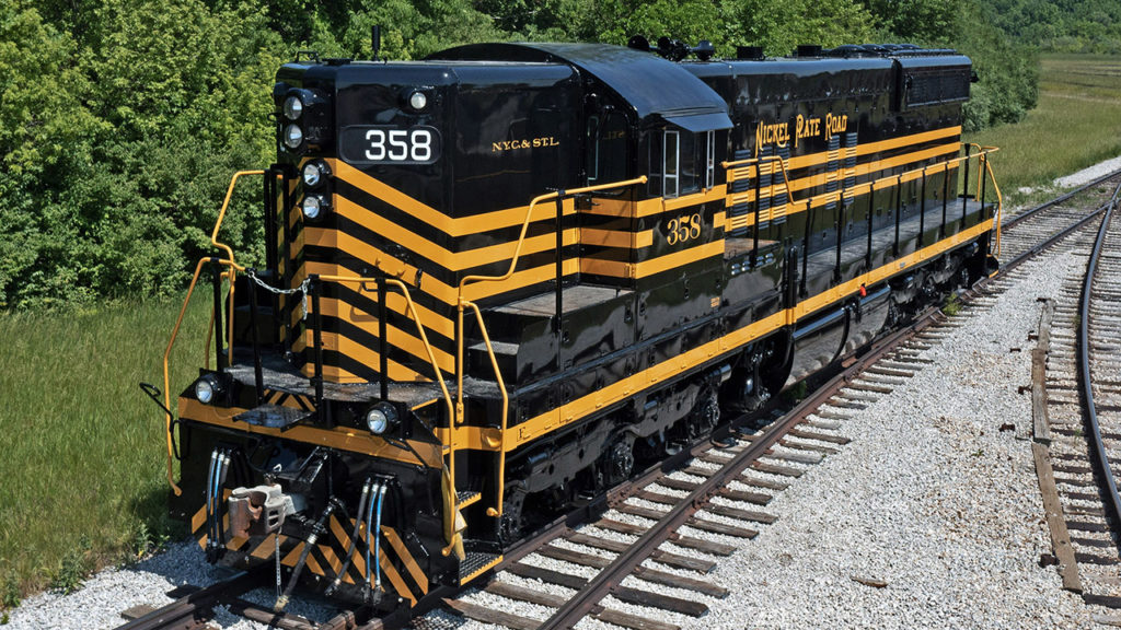 No. 358 was one of 20 diesel-electric locomotives built to replace the NKP’s steam engine fleet, which included Nickel Plate Road Berkshire-type steam locomotive no. 765. The Fort Wayne Railroad Historical Society has restored, owned and operated since the 1970s. The six-axle, 1,750-hp SD9 (for “Special Duty”) went on to serve Norfolk & Western and Norfolk Southern for decades before it was retired. It will be the only operational NKP SD9 to look as it did when new and the only one to operate in rail tourism service.