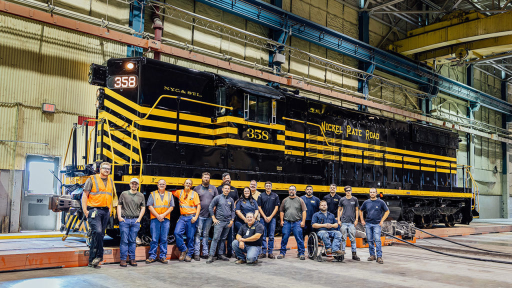 More than 12,000 volunteer hours went into the 358’s restoration. The work was also supported by over $100,000 in financial and in-kind contributions. In addition to Progress Rail and its employees, supporters have included Steel Dynamics, Wheeling & Lake Erie Railway, Nickel Plate Railroad Historical & Technical Society, Crown Battery, Horizon Rail, and numerous private individuals with locomotive expertise. Donations to help complete the restoration can be made at fortwaynerailroad.org/donate.