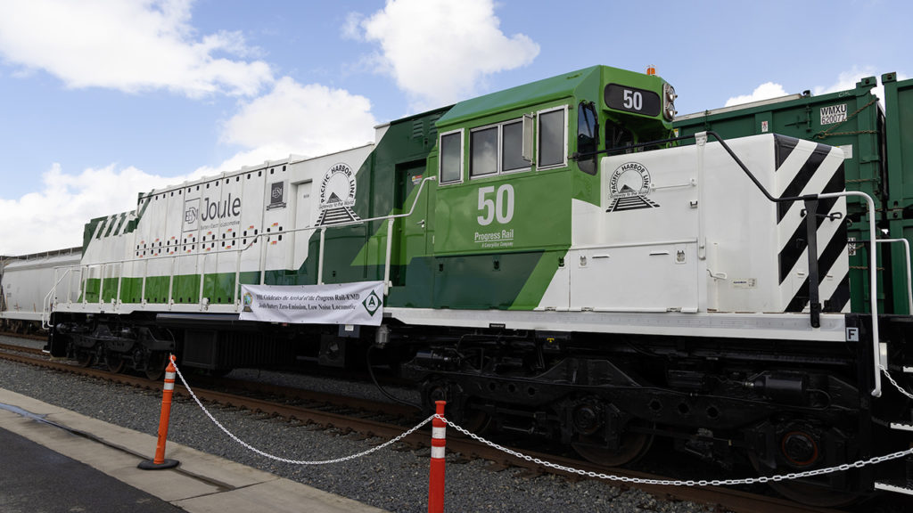 Pacific Harbor Line (PHL) on May 4 showcased its new EMD® Joule battery-electric locomotive from Progress Rail at a graduation ceremony for its latest class of engineers.