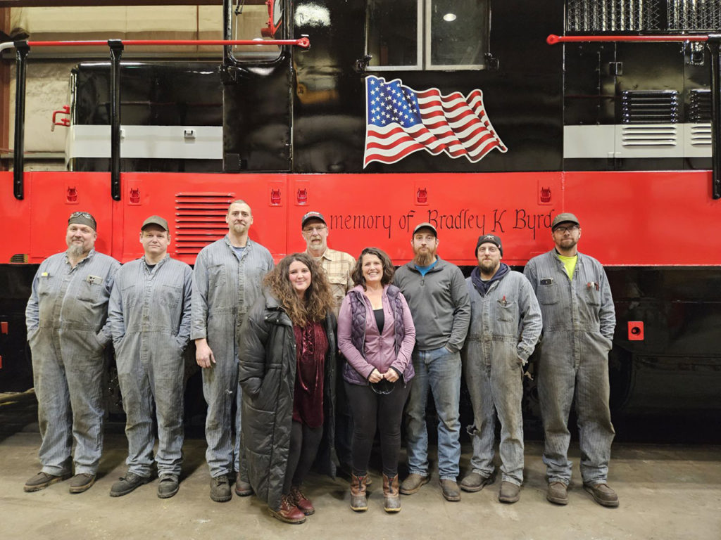 Byrd hired on with POVA in 1998, advancing to the position of CMO and working there continuously until being diagnosed with stage 4 cancer in 2020. Driver says, “Brad was with us for more than 20 years and was instrumental in getting our locomotive repair business started and built up. The locomotive was completely rebuilt by the POVA shop crew with new engine, new generator, rebuilt trucks and rewired, and of course painted.” Driver expects POVA 102 will return to service during the final week of January.