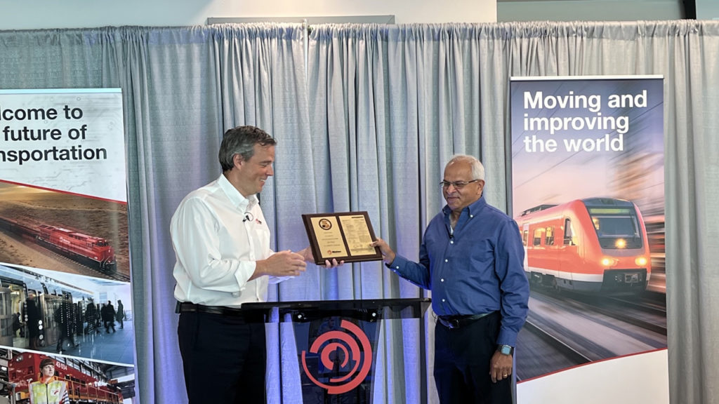 Kumar has spent 21 years developing with a team a locomotive battery system capable of meeting power demands, fitting within existing diesel-electric carbody space and weight-on-rail allotments, and withstanding the harsh railroad environment—ultimately producing Wabtec’s FLXdrive, a 100% battery-powered locomotive that was tested at BNSF in 2021 and is now on order for Union Pacific (10 units); BHP subsidiary Western Australia Iron Ore (two units); Rio Tinto in Western Australia (four units); Australian mining company Roy Hill (one unit); and CN (one unit).