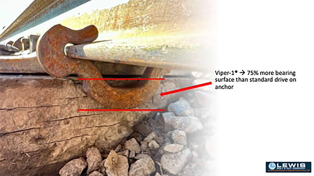 Lewis Bolt & Nut Company’s most recent product launch is the Viper-1® drive-on anchor, says Senior Assistant Vice President of Sales George Apostolou, who adds that the Viper-1® “exceeds American Railway Engineering and Maintenance-of-Way Association (AREMA) Chapter 5, Section 7.1.4 requirements and has a minimum holding power of 9,000 pounds vs. 6,000 pounds (AREMA 7.1.4, Part B).”