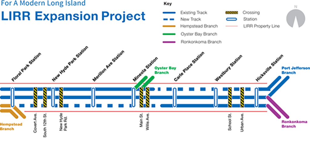 The Third Track project is the centerpiece of the larger $2.6 billion Long Island Rail Road Main Line Expansion Project, which includes renewal of five LIRR stations (New Hyde Park, Merillon Avenue, Mineola, Carle Place, and Westbury), elimination of eight at-grade crossings, upgrades to seven railroad bridges, parking expansions, installation of new sound attenuation barriers and landscaping improvements. With only minor station work left to complete, the project is heading toward the finish line $100 million under budget almost four years after breaking ground.