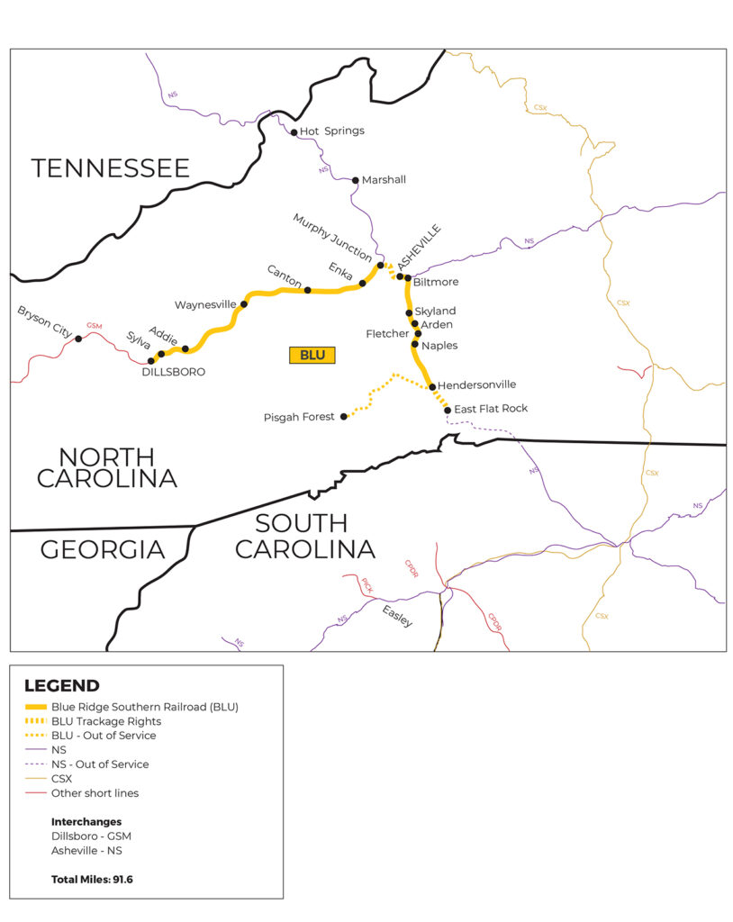 The return of rail to the region also enables the restoration of service on 92 miles of short line railroad in the area. Watco’s Blue Ridge Southern Railroad, which has served businesses in the area for more than 10 years, feeds into NS’s AS Line and broader network from the south and southwest of Asheville, connecting through Norfolk Southern’s Asheville Yard.