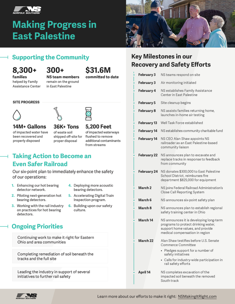 - The establishment of a $1 million Community Fund to support immediate community needs in East Palestine.
