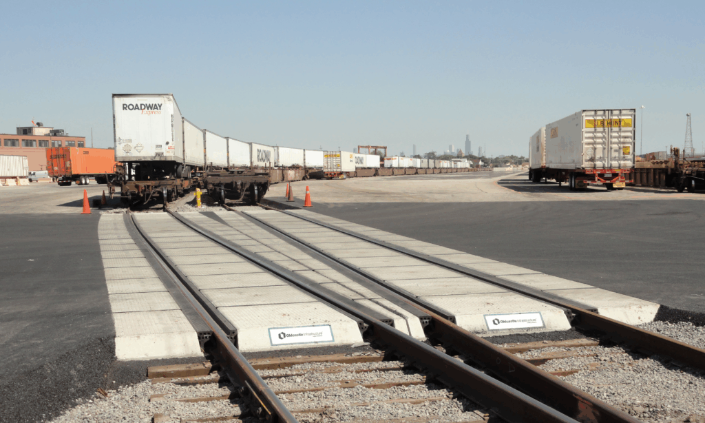Omega has developed and tested a new modular “Tub” style crossing panel built using a high strength 8,000 psi concrete mix. The Tub, the company says, “eliminates the need for ties, plates, and ballast, and does an excellent job of load distribution. As a result, the Tub excels in grade crossings with heavy load applications like port terminals, steel mills, and recycling facilities.”