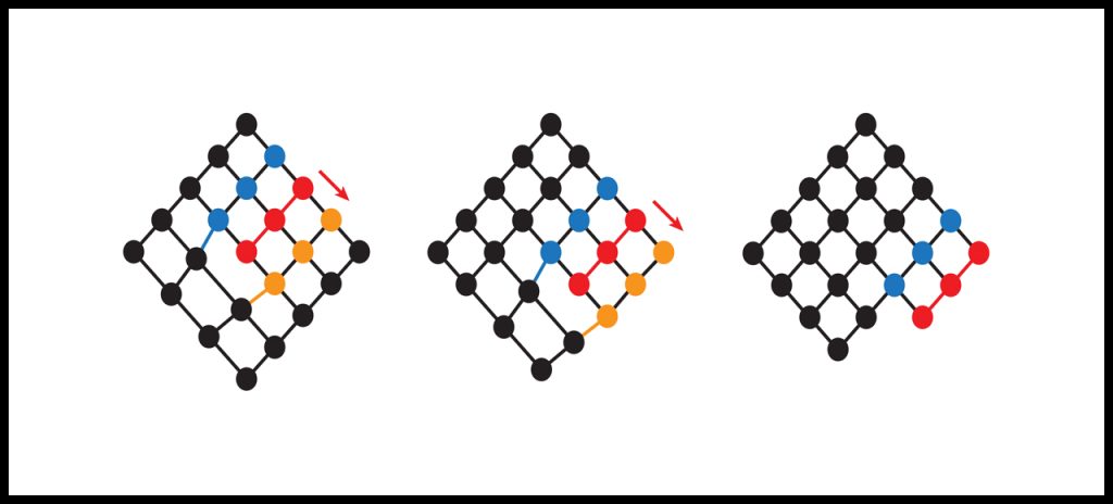Figure 2. Schematic drawing illustrating a dislocation (red circles)