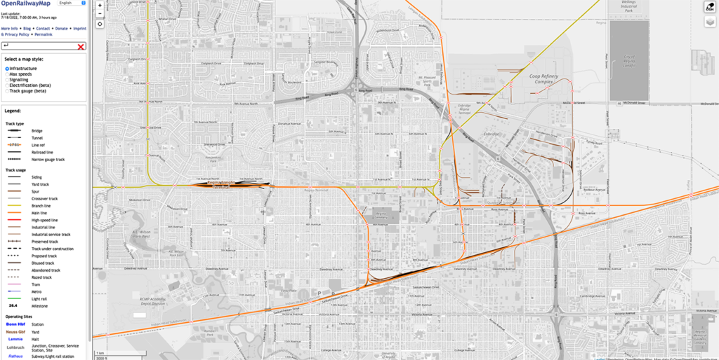 - C$1 million to develop a preliminary design to relocate railroad crossings in Regina, Saskatchewan (above). The City of Regina is contributing the remaining amount for a total investment of C$2.4 million.