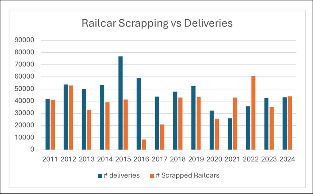 Orders for new railcars for the past two years have been well below replacement levels of 35,000-42,000 railcars annually: