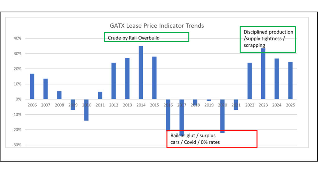 In December 2022, I predicted a sustained period of higher railcar prices and lease rates. Now, three years later, my prediction has become reality. How much longer will it last, what is driving higher lease rates, and what impact will this trend have on the industry?