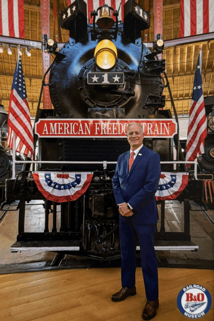 “The American Freedom Train and the locomotive that pulled it, the AFT No. 1, were a touring museum carrying artifacts representing the best of our country,” said Kris Hoellen, Executive Director of the B&O Railroad Museum. “Today, we are honoring this great nation and the mode of transportation that made the Freedom Train possible—the railroad, which is celebrating 200 years in 2027. The AFT No. 1 serves as a bridge connecting these two important anniversaries.”
